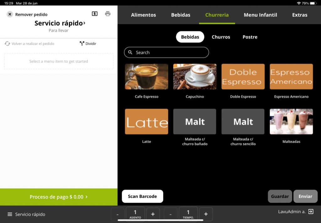 En este ejemplo vamos a utilizar el software de restaurantes LAVU, el cual, te deja diseñar con bebidas personalizadas tu menú para que el cobro y el inventario del día se lleve con mucha más facilidad.