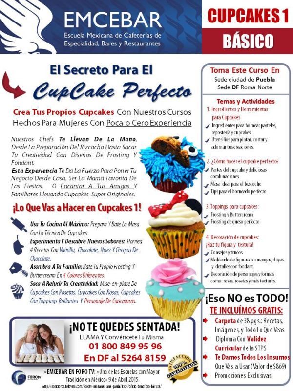 Comunícate con Nosotros y Aparta tu Curso de Cupcakes Básico. No pierdas la Oportunidad y Descubre el Secreto para ¡Hacer el Cupcake PERFECTO!