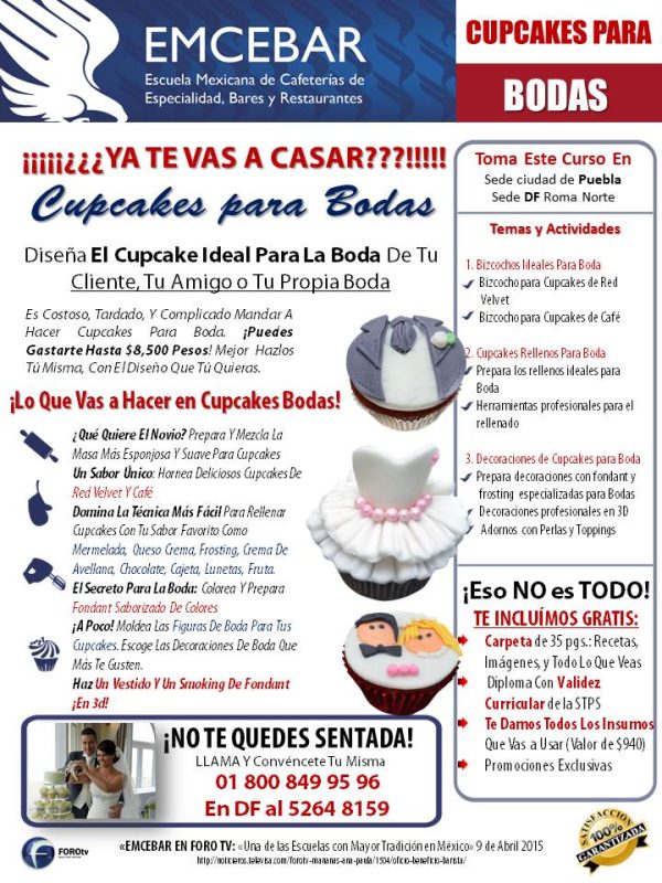 Comunícate con Nosotros y Aparta tu Curso de Cupcakes para Bodas. No pierdas la Oportunidad y Descubre el Secreto para ¡Hacer el Cupcake PERFECTO!